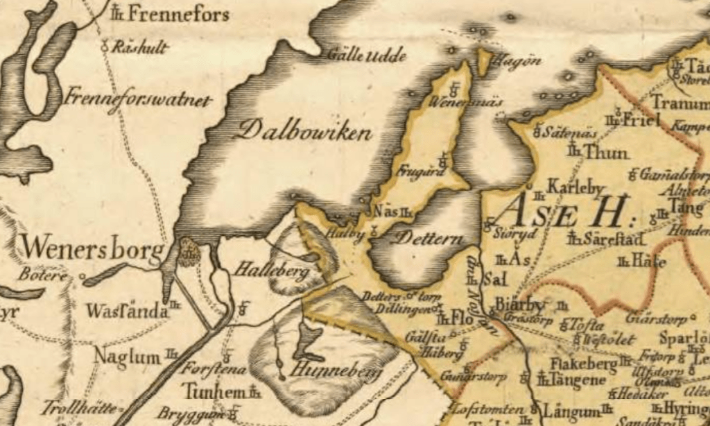 Slutligen finns i antavlan ett segment från Väne härad, närmare bestämt socknarna Norra Björke och Västra Tunhem. Släktforskningen i Väne underlättas av att många bouppteckningar är bevarade – jämte födelse-, vigsel- och dödböckerna ned till 1688, även om några av dessa är ytterst knapphändiga. Jag ska här bara stanna upp vid en släktlinje där namnet Carl upprepas på ett intressant sätt. Inledningsvis nämnde jag att mammas ursprungliga efternamn Karlsson går tillbaka på hennes farfar Carl Jonsson, men vem hade han att tacka, i sin tur, för sitt dopnamn?