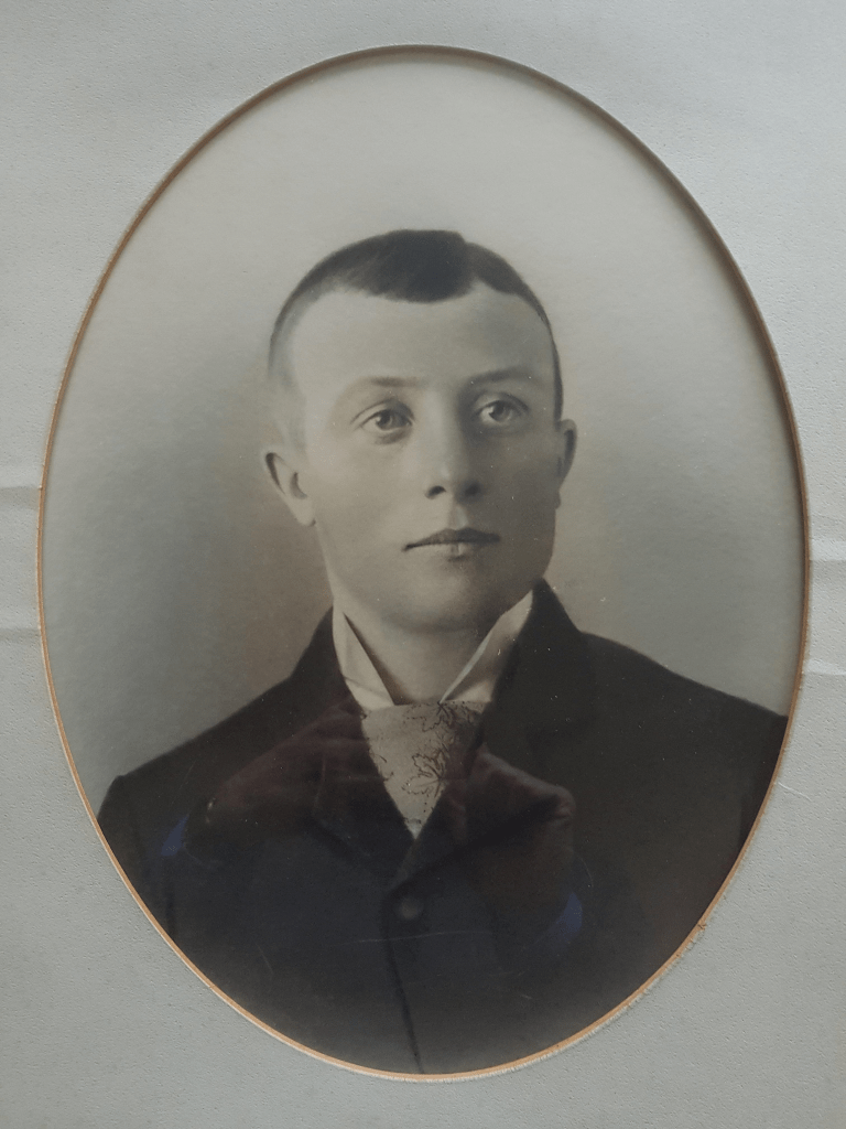 Att Carl Jonsson skaffade sig ett trivsamt hem för sig och sina efterkommande står klart men tyvärr vet jag inte så mycket om honom som person. Han dog innan mamma föddes och skrev inte om sig själv; av hans hand finns mest namnteckningar på kvitton och dylikt bevarade. Känt är att han föddes i Upphärads församling 1872, i en skara på fyra syskon, med två systrar och en bror. Föräldrarna ägde och brukade 1/4 mantal Jordbron, men pappa Jonas dog redan 1875 och mamman, Charlotta, gifte då om sig med hemmansägaren Johan Olausson i Fors församling och Fors by. Familjen växte med två halvsyskon och flera styvsyskon, samtidigt som Carls utsikter att någon gång i framtiden ärva ett eget gårdsbruk minskade. I stället sökte han sig vid 19 års ålder en utkomst i Nordamerika. Dit anslöt snart även storebrodern Johan.