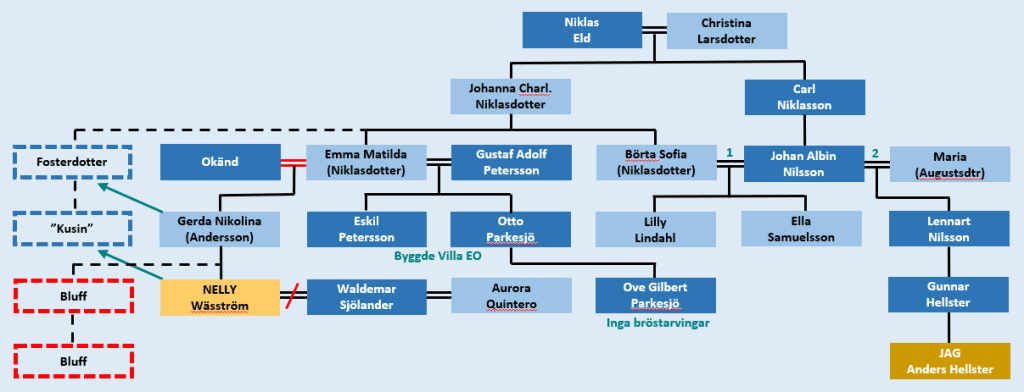Eftersom fjärdingen i Åsen Ödegården inte bestod av odaljord kan vi inte förvänta oss att Johan Johansson kom därifrån och inte heller mantalslängderna antyder detta. Vid bouppteckningen fick dock ”faderbroderen” Mårten Larsson i Knipan, Tuns socken, ansvaret att företräda de omyndiga barnens intressen. På vilket sätt denne bonde var en farbror är inte utrett men i och med att fadersnamnen skiljer sig åt kan vi utesluta honom som den avlidnes helbroder. Ett tag verkade det rimligare att betrakta Mårten Larsson som en ingift farbror för i husförhörslängden 1770—1789 kallas hans hustru Maria Johansdotter men också hon dunstade bort som ett tänkbart syskon till Johan Johansson, åtminstone som helsyster. Andra källor ger nämligen vid handen att hon hette Andersdotter. För att få fler idéer om hur Johan Johanssons anhörigkrets såg ut var det nödvändigt att söka brett i domböckerna och då dök systern Elsa Stina upp som inneboende i Ödegården. Denna kvinna kallades omväxlande Johansdotter, Frisk och Starin – vid ett tillfälle med tillägget madame, vilket skilde henne från vanliga allmogekvinnor – namn med vars hjälp hon känns igen som förutvarande hustru till klockaren Anders Månsson Starin i Vänersborg.